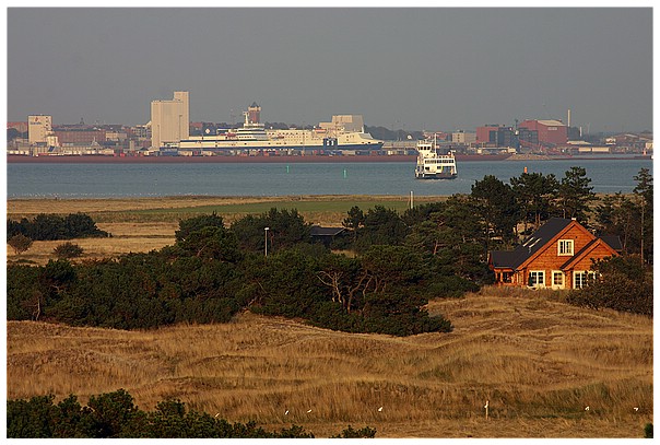 Blick von der Insel auf Esbjerg, der siebtgrößten Stadt Dänemarks.