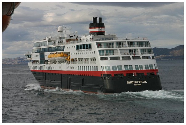 Begegnung auf See mit dem Schwesterschiff „Midnatsol“.