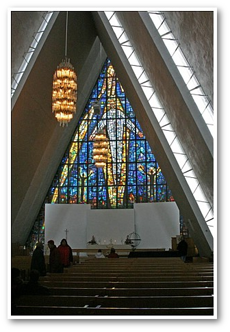 Die Eismeerkathedrale ist das Wahrzeichen von Tromsø. Sie wurde 1965 erbaut.