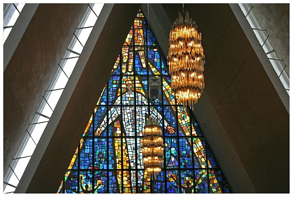 Ein 140 m² großes Glasfenster an der Ostseite der Kirche.