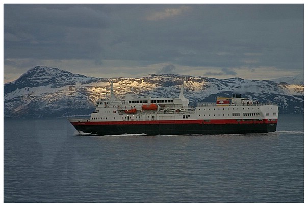 Die "Vesterålen". Baujahr 1983. Das älteste Schiff der Hurtigrute.