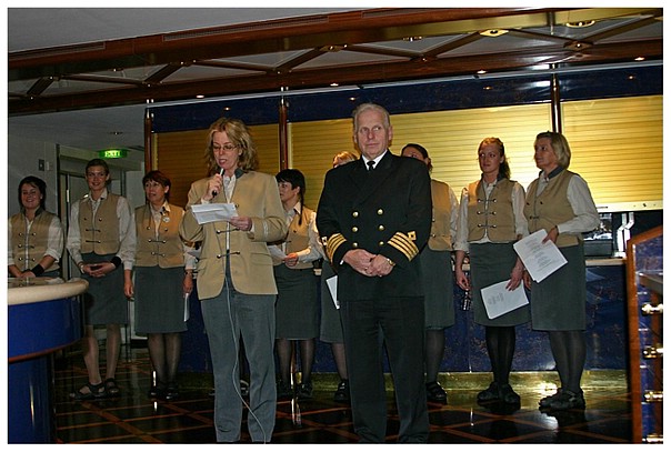 Der letzte Abend an Bord. Unsere Reiseleiterin verabschiedet stellt die ganze