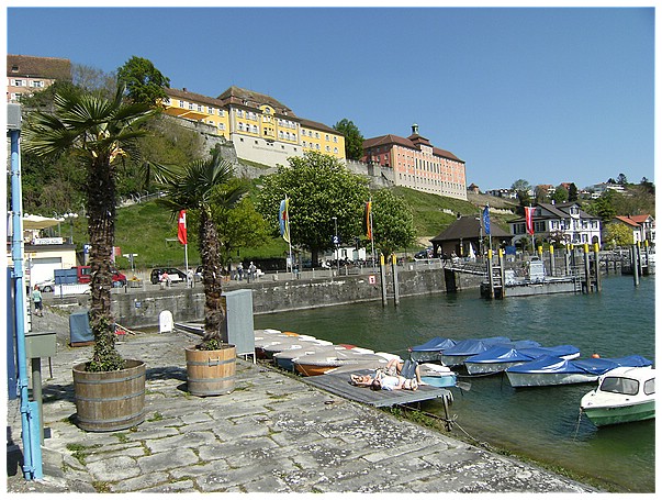 Hafeneinfahrt von Meersburg. Von dort setzen wir mit der Fähre nach Konstanz über.