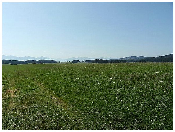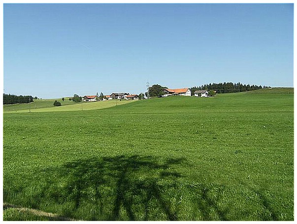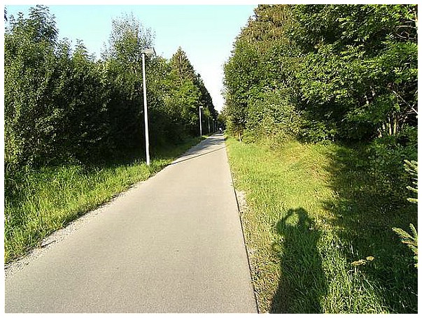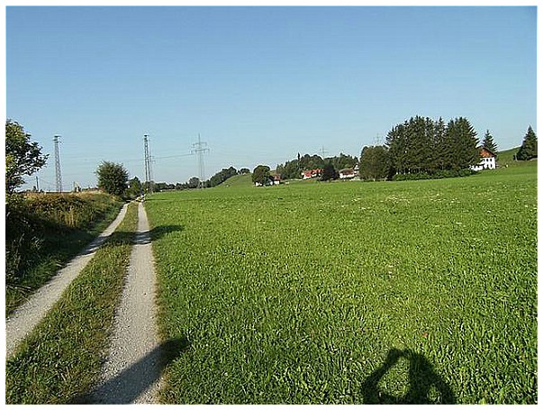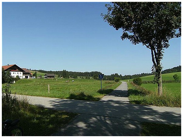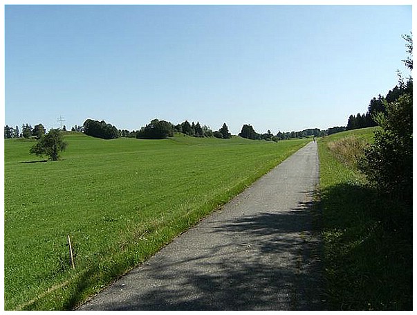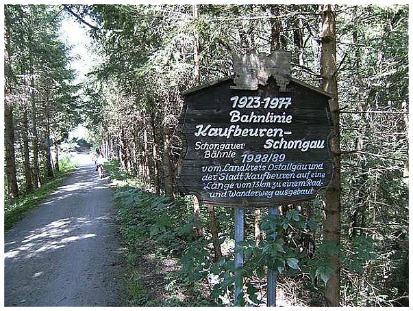 Wir radeln auf der ehemaligen Bahntrasse Richtung Kaufbeuren.