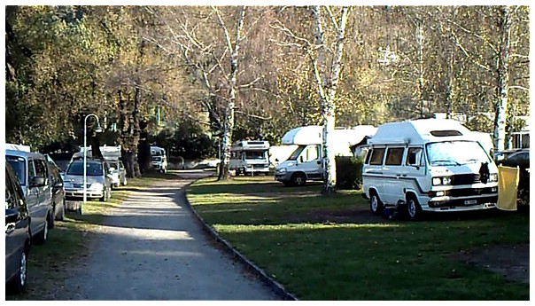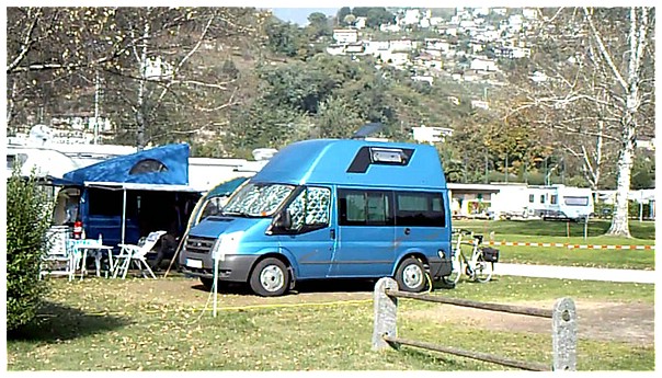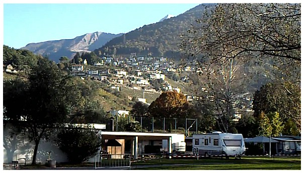 Campingplatz Tamaro, kurz vor Locarno. Der Platz liegt direkt am Ufer des Lago Maggiore.