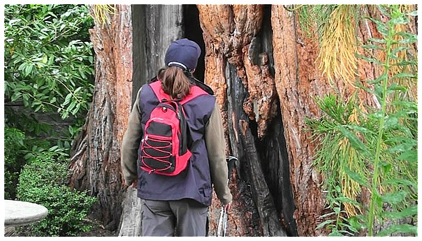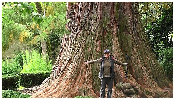 In einem kleinen Park stehen 2 riesige Mammutbäume.