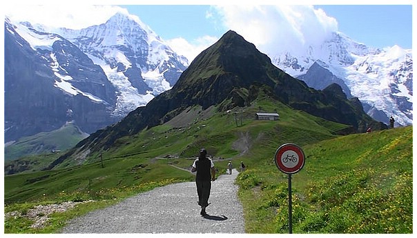 Wir wandern auf dem Panorama-Weg von der Bergstation Männlichen zur Kleinen Scheidegg.
