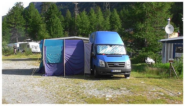 Campingplatz Plauns in der Nähe von Pontresina, Meereshöhe 1.870 m.