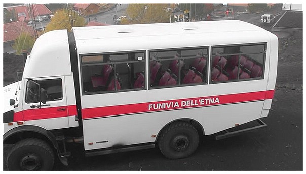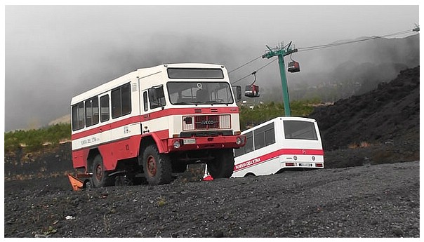 Mit diesen geländegängigen Bussen gelangt man von der Bergstation (2.504 m) der