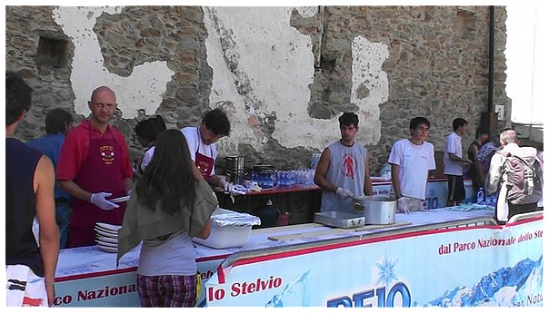 Wanderer mit Essen und Trinken versorgt.