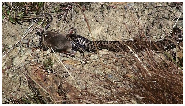 Unterwegs können wir eine Kreuzotter beim Beutefang beobachten.