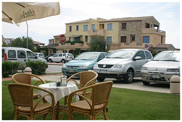Die letzten Stunden auf Sardinien. Wir trinken noch einen Abschieds-Kaffee in Porto San Paolo.