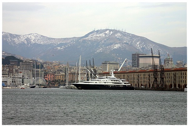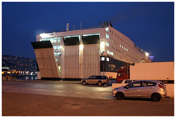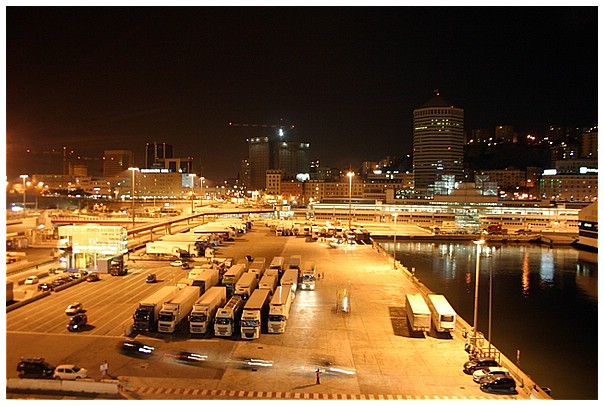 Am Nachmittag kommen wir im Fährhafen von Genua an. Von hier starten wir