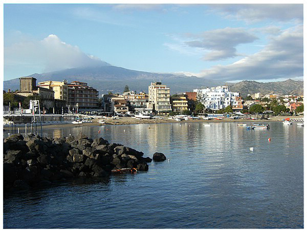 08:00 Uhr, Giardini Naxos mit freier Sicht auf den Ätna.