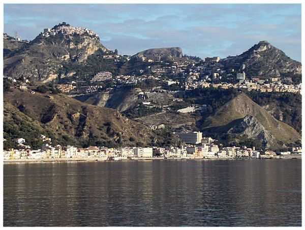 Blick auf Taormina und Castelmola. Ich freue mich schon auf die kommenden Bergwertungen.