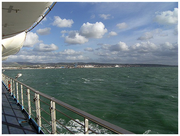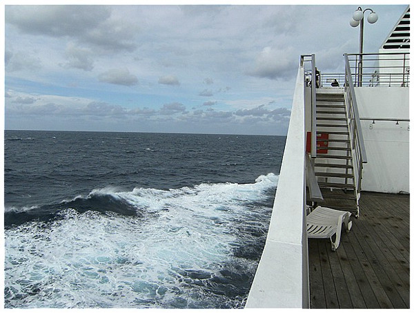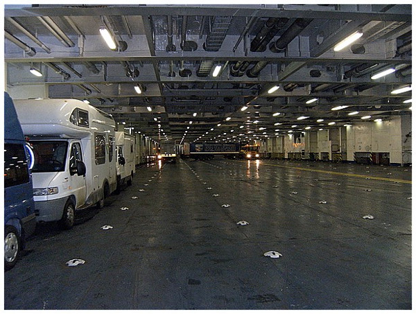 3 Stunden vor Abfahrt im Bauch der Fähre verladen.
