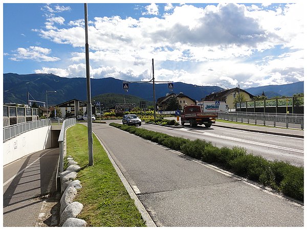 Am nördlichen Stadtende von Bruneck passieren wir einen unterirdischen Kreisverkehr.