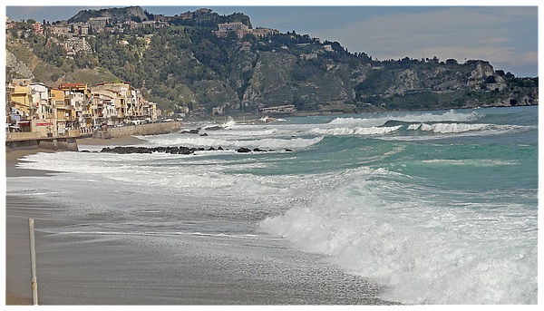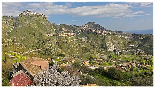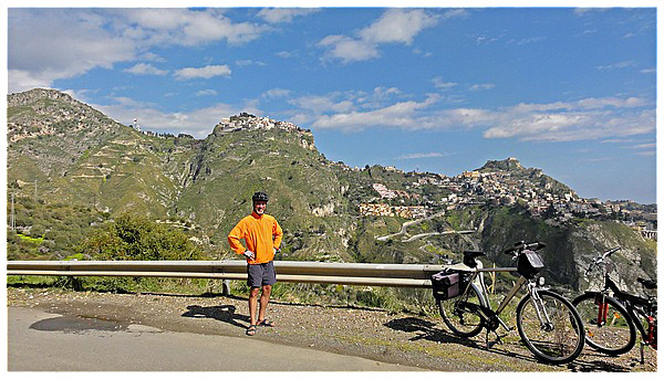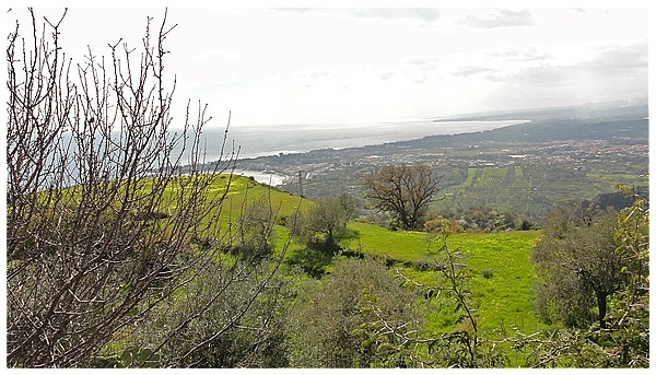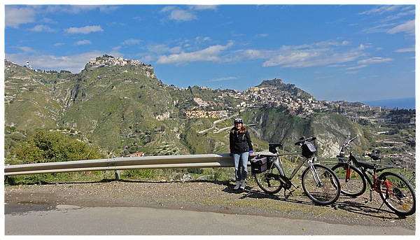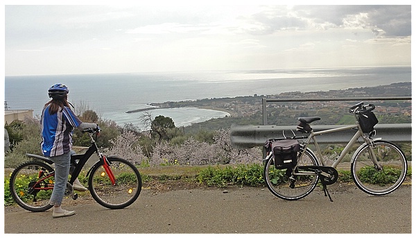 Am Scheitelpunkt unserer Tour. Blick auf die Bucht von Giardini-Naxos.
