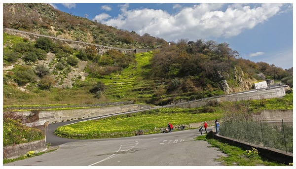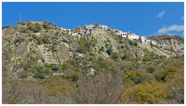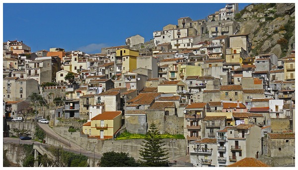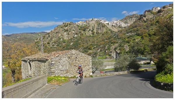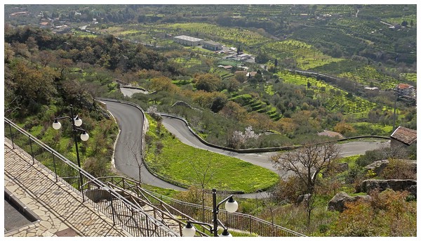 die Straße rechts ab und führt in etlichen Serpentinen in das Dorf Motta Camastra,