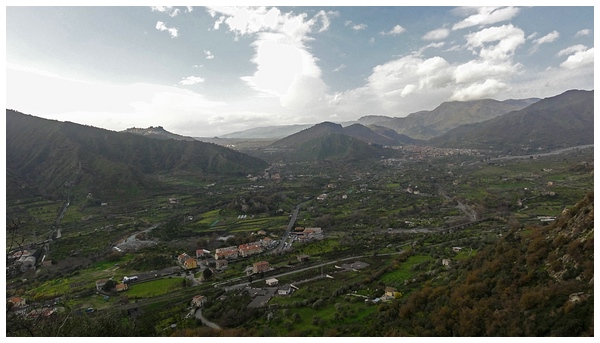 Blick von unten auf Motta Camastra.