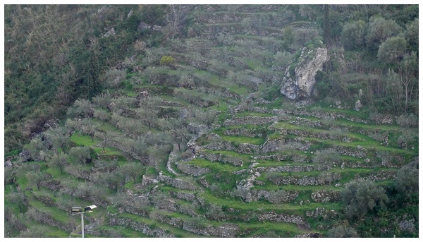 Blick von Melia zurück zur Küste. Mittig am linken Bildrand erkennt man den