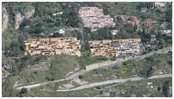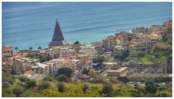 Giardini-Naxos von oben gesehen.