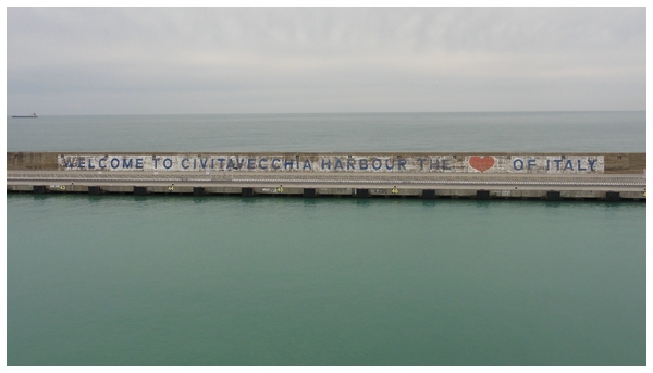 14:00 Uhr. Etwa 1 Seemeile vor dem Hafen von Civitavecchia kommt der