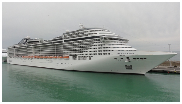 Am Kai liegen die Kreuzfahrtschiffe MSC Splendida und Costa Pacifica.
