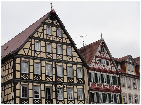 Marktplatz von Bad Mergentheim mit den Zwillingshäusern.