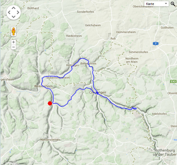 In Creglingen verlassen wir das Taubertal und radeln über die Ausläufer der Frankenhöhe