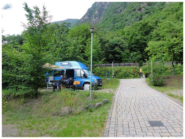 Terrassenförmig angelegte Stellplätze.