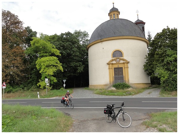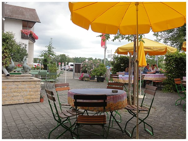 In Wipfeld gibt es einen kurzen Regenschauer. In einem netten Biergarten finden wir Unterschlupf.