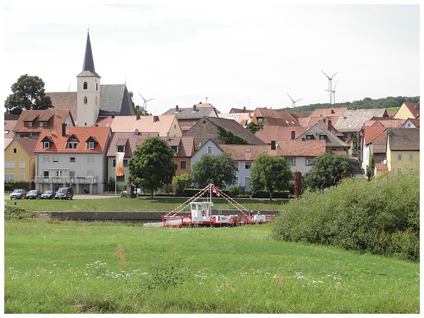 Blick auf Obereisenheim. Auch hier besteht die Möglichkeit mit einer Mainfähre überzusetzen.