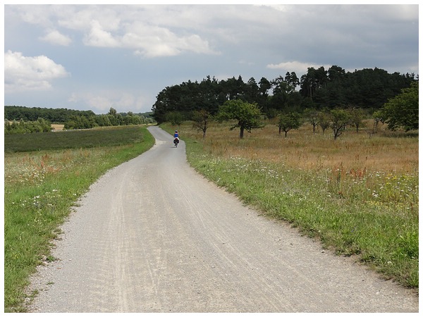 Über Wald und Wiesen radeln wir nach Volkach zurück.