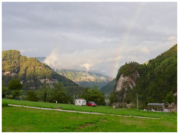 Ab Trient beginnt es in Strömen zu regnen, doch wir kommen auf der gut ausgebauten SS47 problemlos voran. Nach 94 km erreichen wir ARSIÈ.
