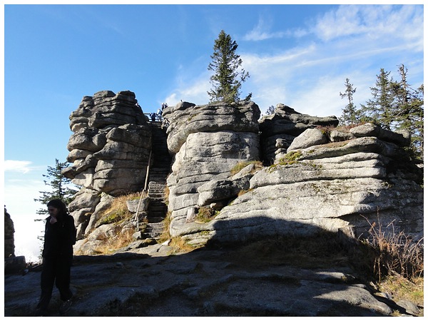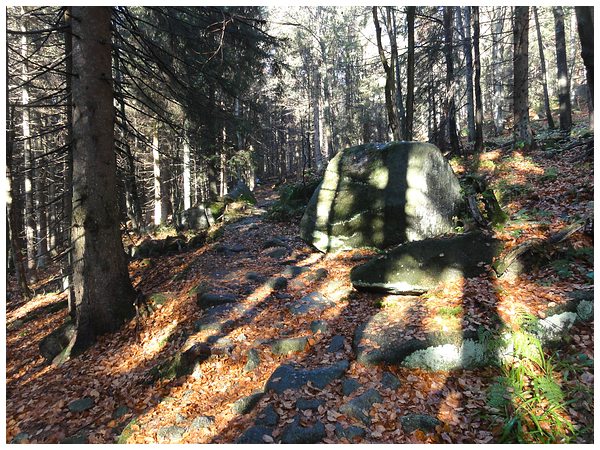 Kissenartig geformte Felsblöcke, in Fachkreisen Wollsackverwitterung genannt.