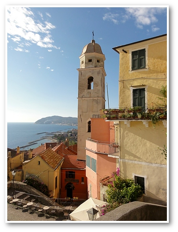 Nach einer kleinen Bergwertung erreichen wir Cervo und genießen dabei immer wieder die schönen Ausblicke.