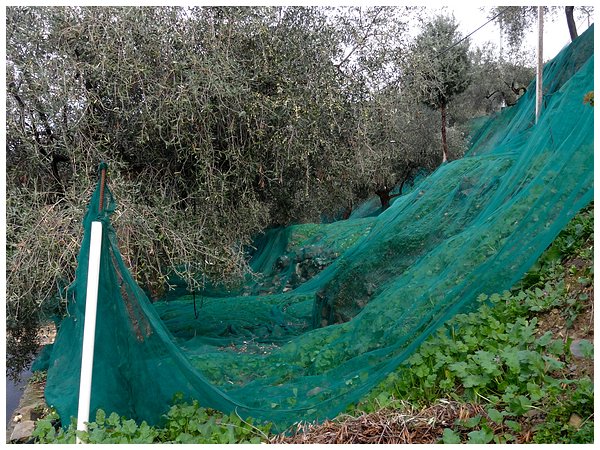 Taggiasca-Oliven in mühsamer Handarbeit geerntet.