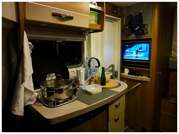 ... während im Womo das Abendessen köchelt.