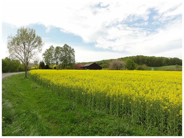 Vorbei an gelb leuchtenden Rapsfeldern.