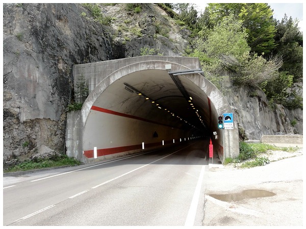 Dort biegen wir rechts ab und folgen der Staatsstraße 349 (Via della Fricca) bis zum Tunnel.