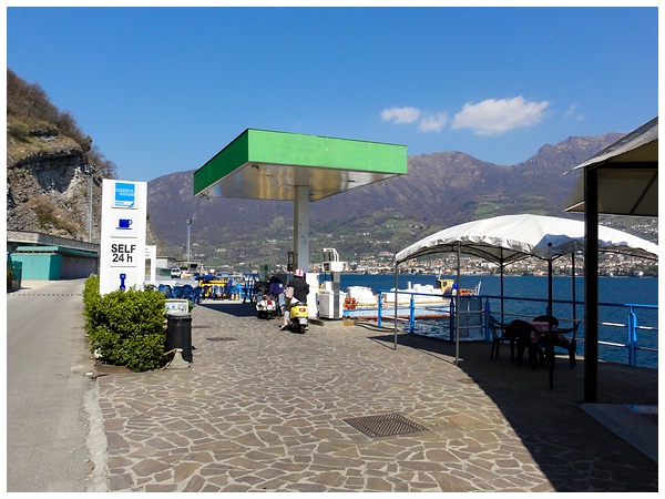 ... vorbei an der einzigen Tankstelle der Insel, in Richtung Peschiera Maraglio zurück.