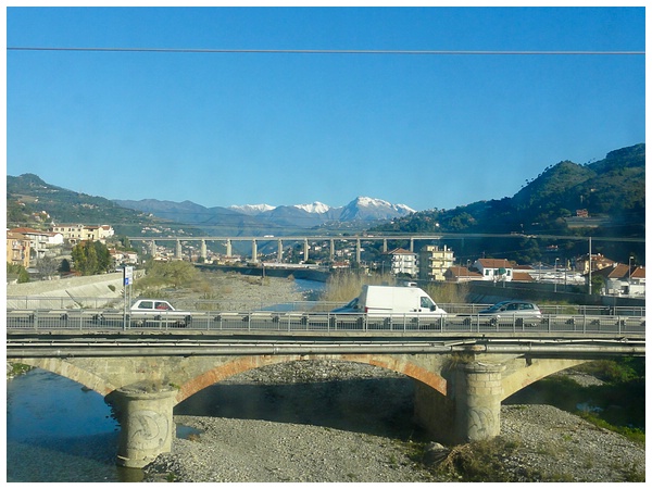 Arma di Taggia kann man einen kurzen Blick auf die schneebedeckten Berge