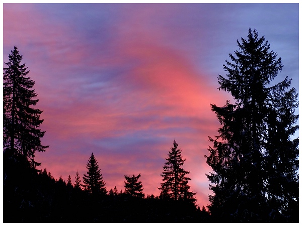 Sonnenaufgang über dem Kreuzbergpaß bei -15° C. Der Urlaub geht zu Ende.