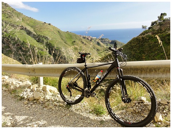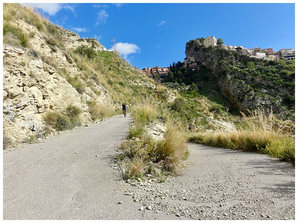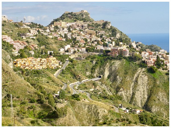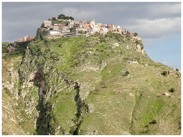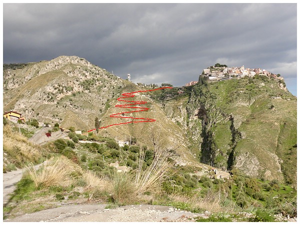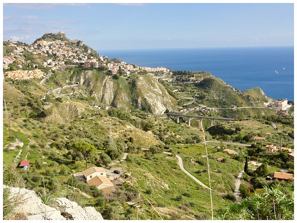 Blick zurück auf Castelmola und den abenteuerlichen Weg.