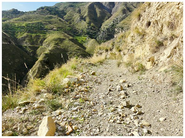 Nun gehts auf einen immer schmäler werdenden Weg und engen Serpentinen steil nach unten.