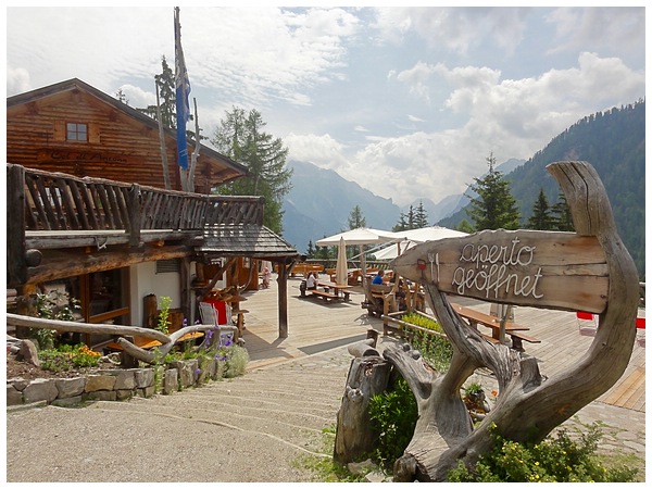 Wir sind oben angekommen und genießen, bevor wir uns weiter auf den Weg hinunter in das Gadertal machen,