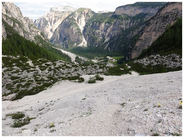 Blick zurück in das Rautal und der Pederü-Hütte.