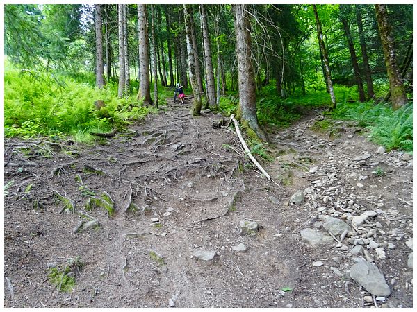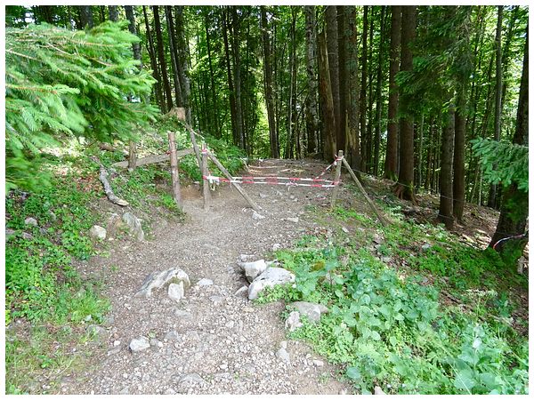 Wir verlassen den Alpweg. Über Stock und Stein geht's bergab.