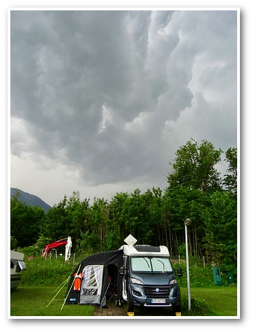 Wir erreichen den Campingplatz. Gerade noch rechtzeitig.